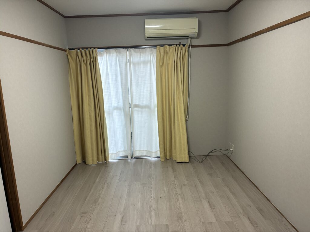 これまでは畳の和室でしたが、今回の工事で全面的な床面張替を行い、フローリング仕様へと変更しました 。併せて壁紙の張替も行ったことで 、部屋全体がパッと明るい印象になっています。一人暮らしのアパートをイメージしやすい、モダンな雰囲気に仕上がりました。